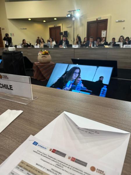 En representación de Chile, la directora Serpat participó en la Sesión de alto nivel, el día la apertura del foro, el miércoles 27 de mayo bajo el tema "Hacia Mondiacult 2025: Desafíos contemporáneos en la lucha contra el tráfico ilícito, el retorno y la restitución de bienes culturales", moderado por el director general para Asuntos Culturales del Ministerio de Relaciones Exteriores del Perú, Carlos Amézaga Rodríguez.