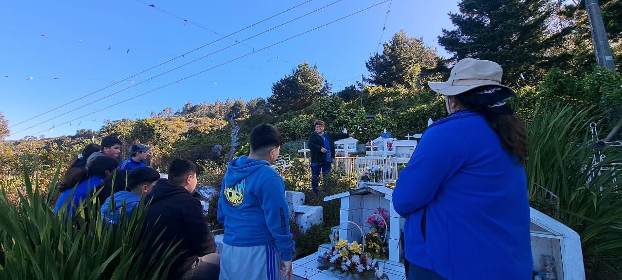 Durante la actividad, los estudiantes de 6° y 7° básico visitaron el Cementerio Simbólico de Caleta Tumbes, espacio donde la comunidad despide y recuerda a los pescadores fallecidos, en colaboración con la Agrupación de Deudos de Pescadores Fallecidos en Faena de Pesca.
