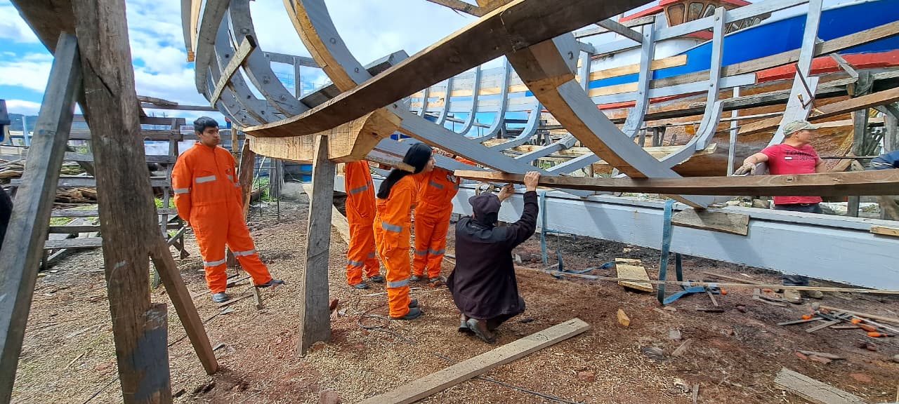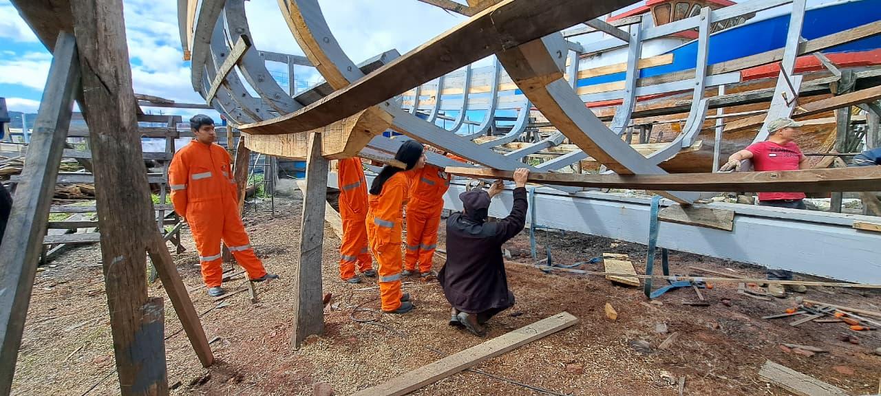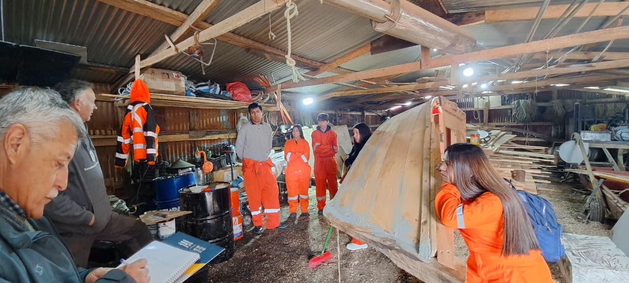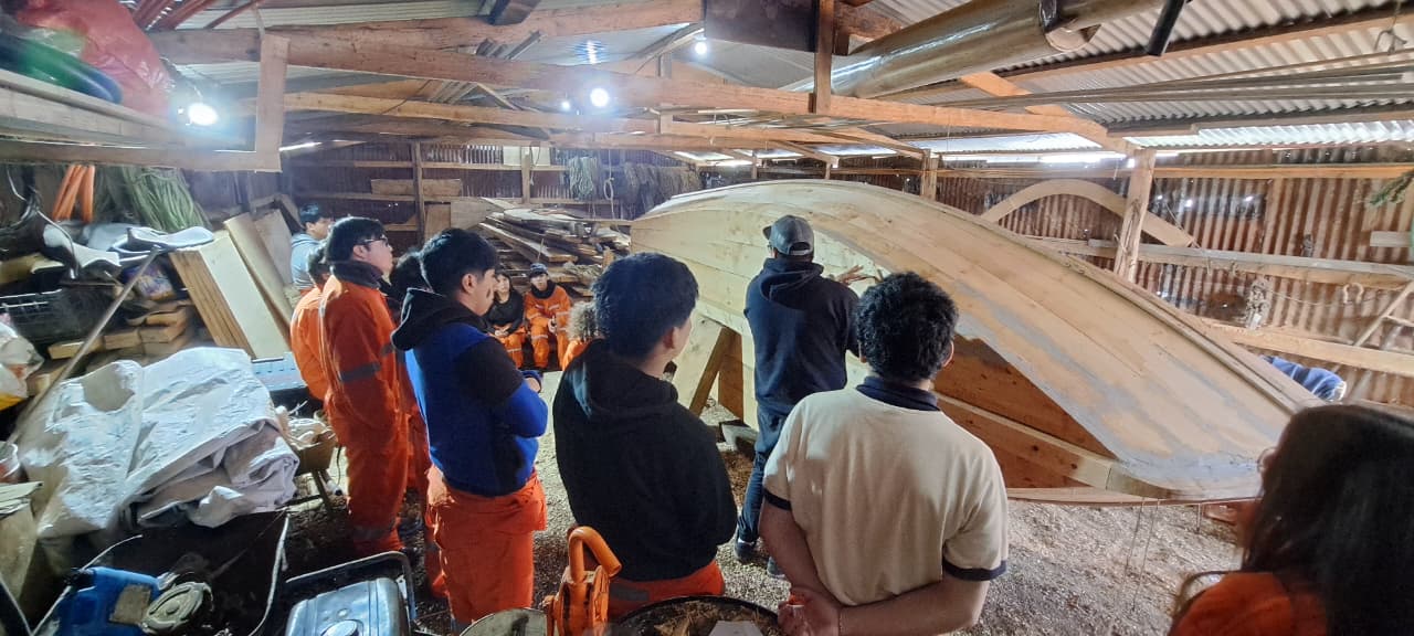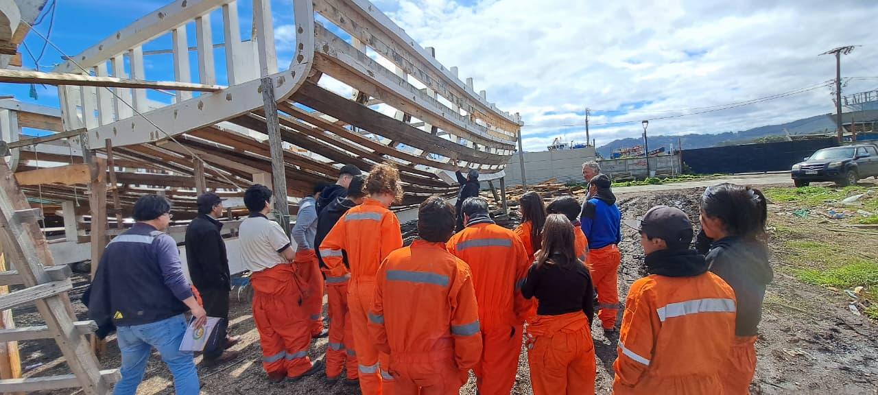 La jornada se desarrolló junto a los carpinteros de ribera de Lebu, quienes ofrecieron una charla introductoria en la que compartieron la historia, las técnicas y los desafíos actuales de este oficio ancestral. Posteriormente, se realizó una visita guiada al astillero, donde los adolescentes observaron directamente los procesos constructivos de las embarcaciones.