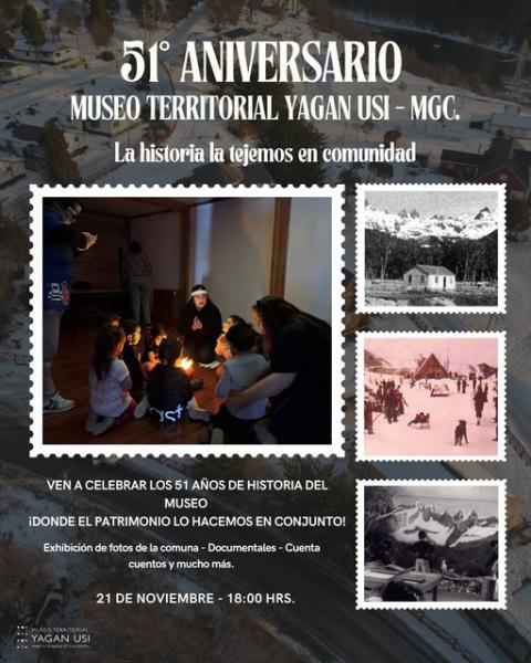 Este viernes 21 de noviembre y con la presencia de autoridades regionales, se desarrollará en Puerto Williams una serie de actividades alusivas al quehacer del Museo Territorial Yagan Usi Martín González Calderón del Servicio del Patrimonio Cultural, en el marco del 51° aniversario de su creación.