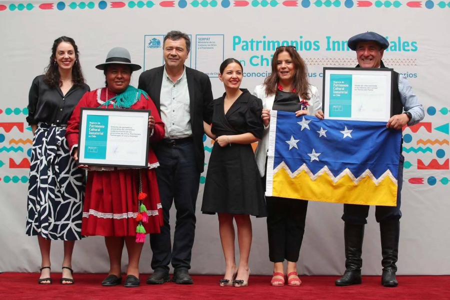 Junto a la subsecretaria del Patrimonio Cultural, Carolina Pérez, la subsecretaria de las Culturas, Noela Salas, y la directora del Servicio Nacional del Patrimonio Cultural (Serpat), Nélida Pozo, la autoridad encabezó la ceremonia “Patrimonios Inmateriales en Chile: Reconocimiento a sus comunidades y territorios”, donde se distinguió a ocho comunidades portadoras de expresiones patrimoniales inmateriales que ingresan al Registro de Patrimonio Cultural Inmaterial de Chile. Entre ellas, "El Modo de vida asociado a las labores del campo en Torres del Paine", se reconoce como expresión patrimonial e ingresa a este registro que reúne las diversas y ricas manifestaciones que surgen desde los territorios e imprimen sello a la identidad nacional.