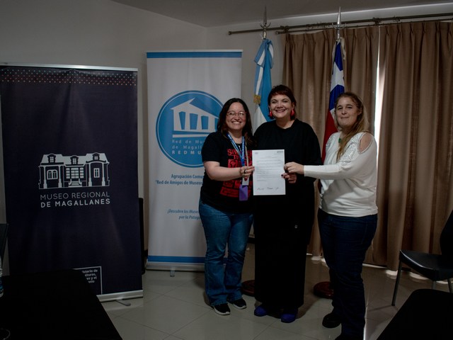 La delegación de museos pertenecientes al Servicio del Patrimonio Cultural de la región estuvo integrada por las profesionales Guillermina Saldivia, encargada de Colecciones del Museo Territorial Yagan Usi Martín González Calderón y Vania Gessel, encargada de Educación y Mediación del Museo Regional de Magallanes, quien también representó a la Red de Museos de Magallanes.