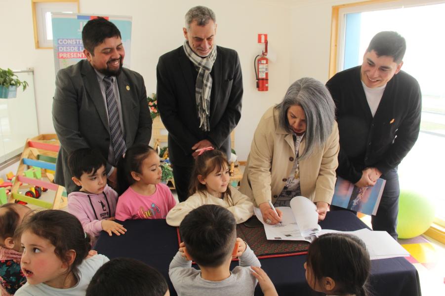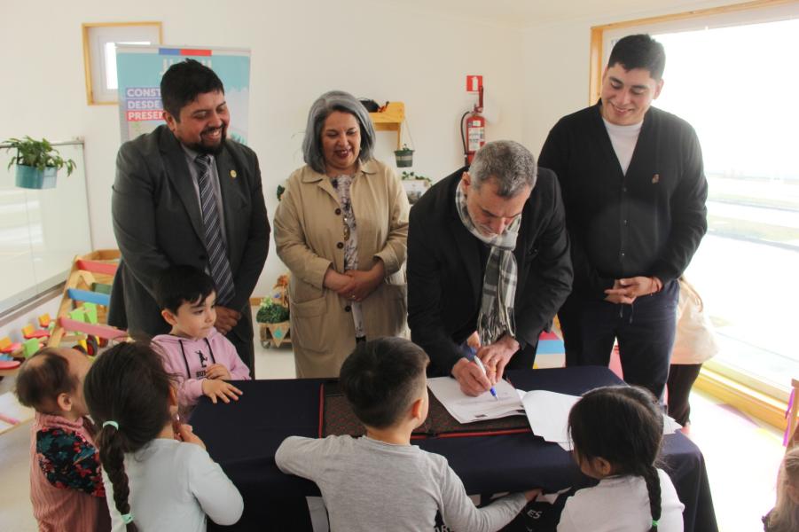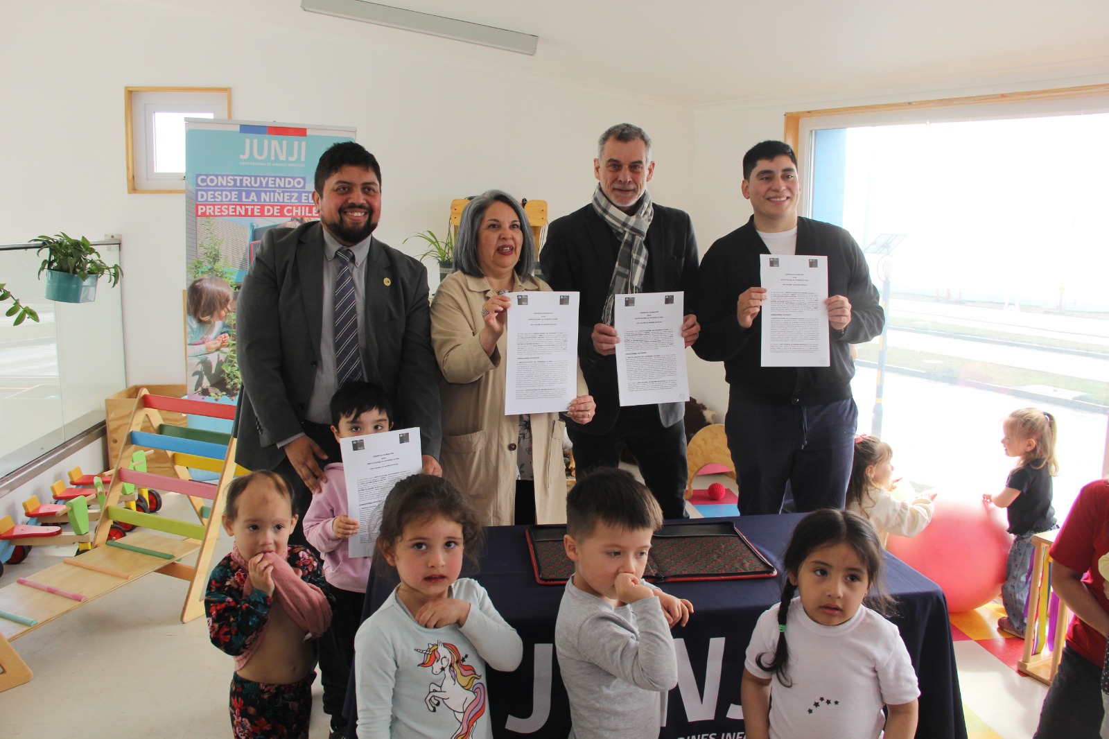 Un grupo de entusiastas párvulos del Jardín Infantil "Costanera del Estrecho" de la Junta Nacional de Jardines Infantiles (Junji) participó en la actividad de lanzamiento del Plan de Acción Regional para la Política de Educación Patrimonial, que culminó con la firma de un convenio de colaboración entre Junji y el Servicio del Patrimonio Cultural (Serpat).