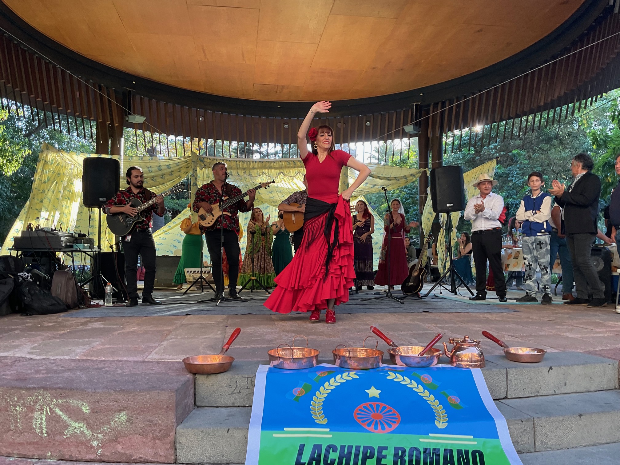 En el Día Internacional del Pueblo Gitano, la comunidad Romani chilena organizó un festejo en la Plaza de Armas de Santiago, con música, bailes y ágape, en que exhibieron la artesanía en cobre que los identifica.