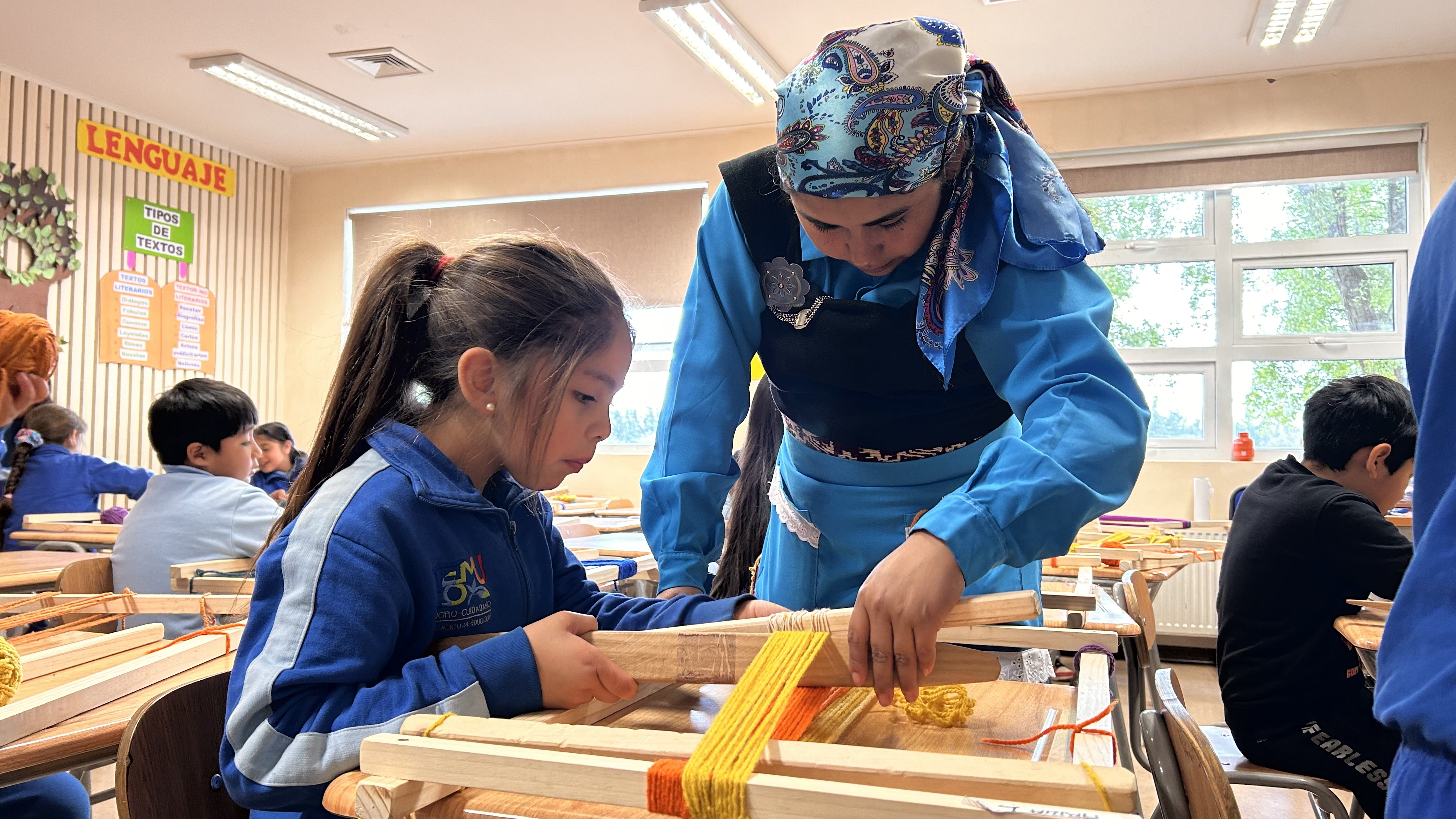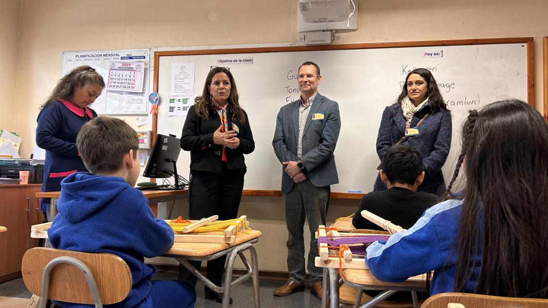 Durante la jornada, la Directora se hizo partícipe de una clase del lenguaje artístico de Gürrekan (tejido). En la instancia, las niñeces del tercer año básico que participan del taller presentaron sus tejidos y compartieron sus comentarios sobre el aprendizaje y la experiencia vivida.