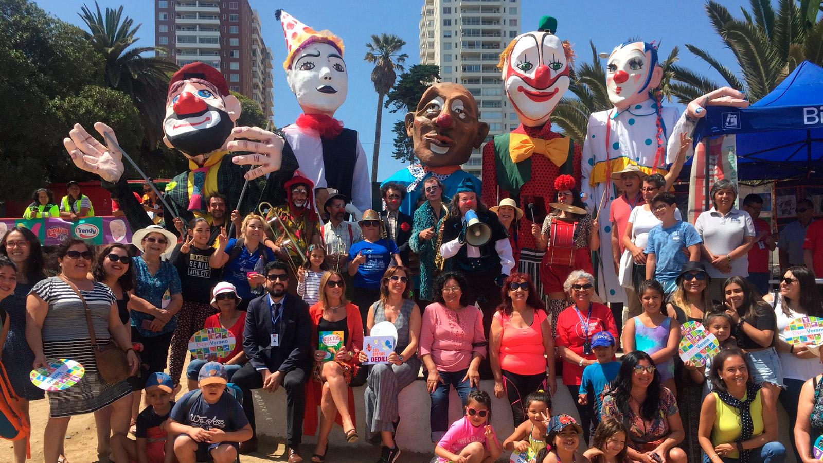 La cita en Valparaíso incluyó un espectáculo de comparsa a cargo de la agrupación "Teatro Museo, Títeres y Payasos", quienes recorrieron la playa invitando a los veraneantes a participar, entregaron regalos y realizaron el taller infantil "Fauna entretenida en peluches".