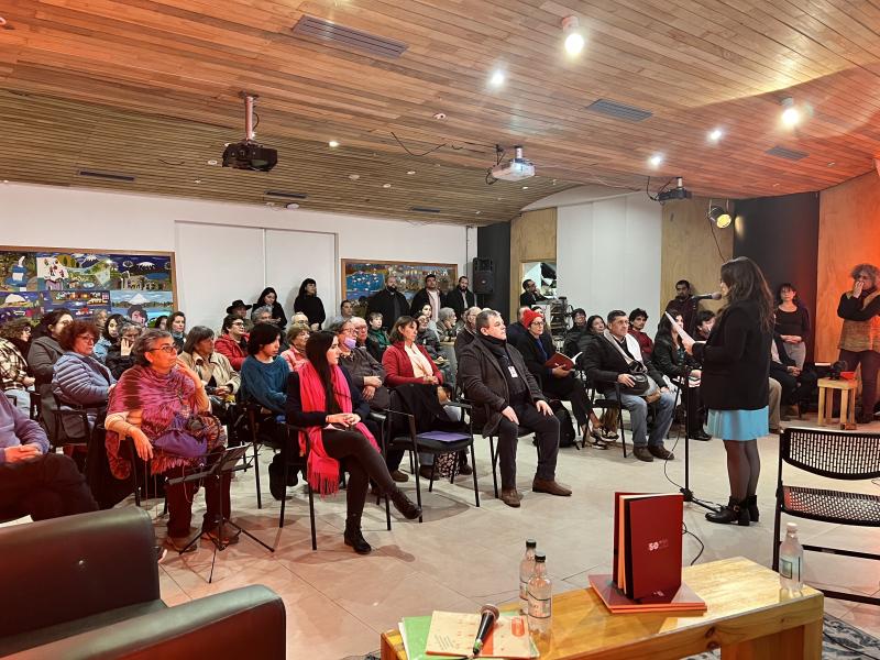 El ciclo de lanzamientos del libro "50 Versos a lo Poeta. A medio siglo del Golpe de Estado en Chile" concluyó este miércoles 5 de junio en el Centro de Extensión (Centex) del Ministerio de las Culturas, las Artes y el Patrimonio en Valparaíso. La directora del Servicio Nacional del Patrimonio Cultural, Nélida Pozo, encabezó el evento, acompañada de un grupo de cantores y poetas incluidos en la publicación.