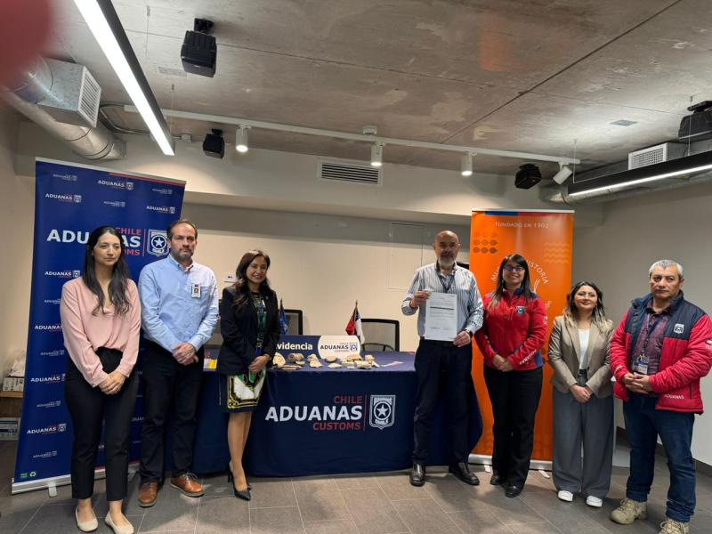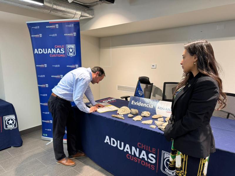Se trata de piezas paleontológicas que estaban bajo custodia de la Aduana Regional de Talcahuano, tras ser decomisadas cuando eran transportadas por viajeros vía terrestre, a través de los pasos fronterizos Pichachén, en la Región del Biobío, y Pehuenche, en la Región del Maule.