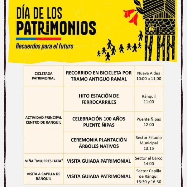 El Día de los Patrimonios es una celebración anual organizada por el Ministerio de las Culturas, las Artes y el Patrimonio, que busca promover el disfrute, conocimiento y reflexión ciudadana sobre los patrimonios en Chile.