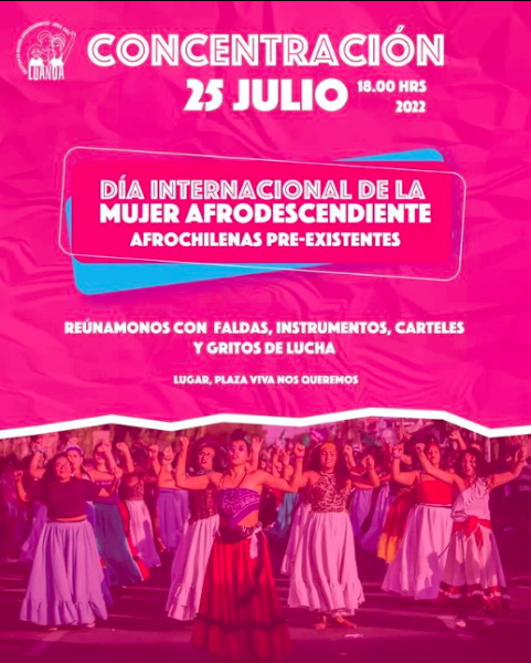 A partir de las 18:00 horas, en la Plaza Vivas Nos Queremos, en la ciudad de Arica, se desarrollará un diálogo de concentración en conmemoración de esta fecha instaurada el año 1992, con el objetivo de visibilizar a las mujeres afrodescendientes y promover políticas públicas que ayuden a mejorar su calidad de vida. La Colectiva Luanda, invita a la comunidad de mujeres afrochilenas a reunirse con pañoletas, demandas y pancartas.